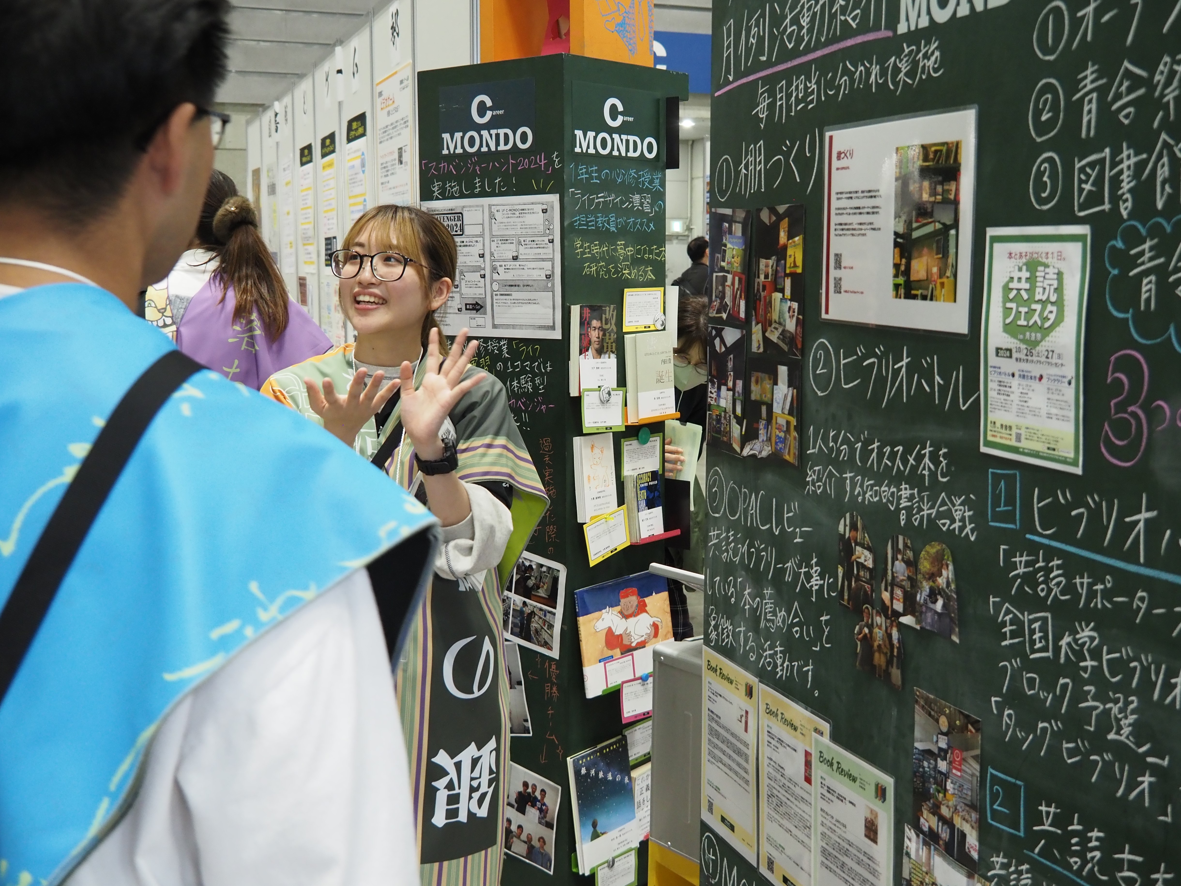 ブースに黒板本棚を持ち込み、その活動をご紹介します。