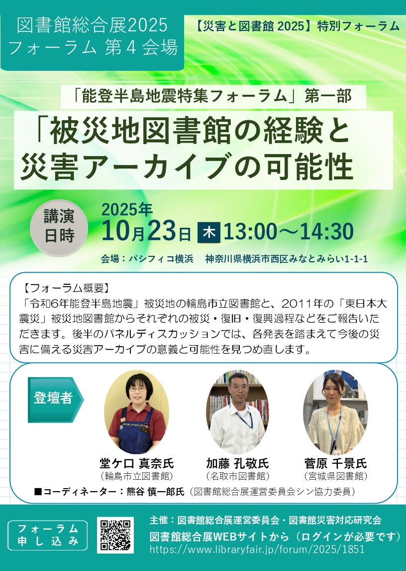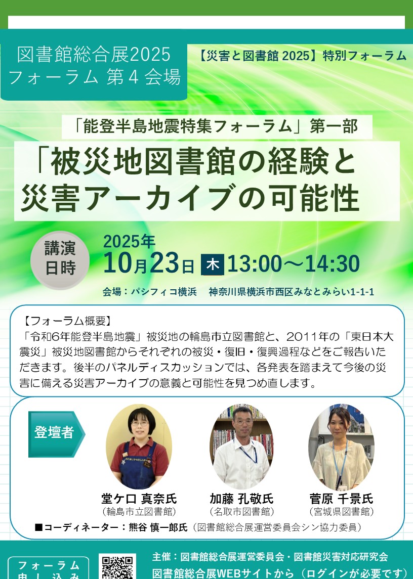 【災害と図書館2025】連続フォーラム 10/23(木)13:00-14:30