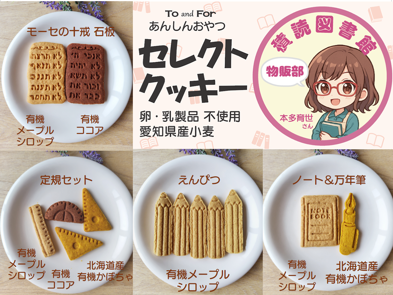 積読図書館に勤務する32歳の図書館司書 本多育世さんをキャラに、もしライブラリーショップがあったら、そこで売られていたら楽しいな、のアイテムをご来場の皆さま向けに、おみやげのつもりでつくらせていただきました。