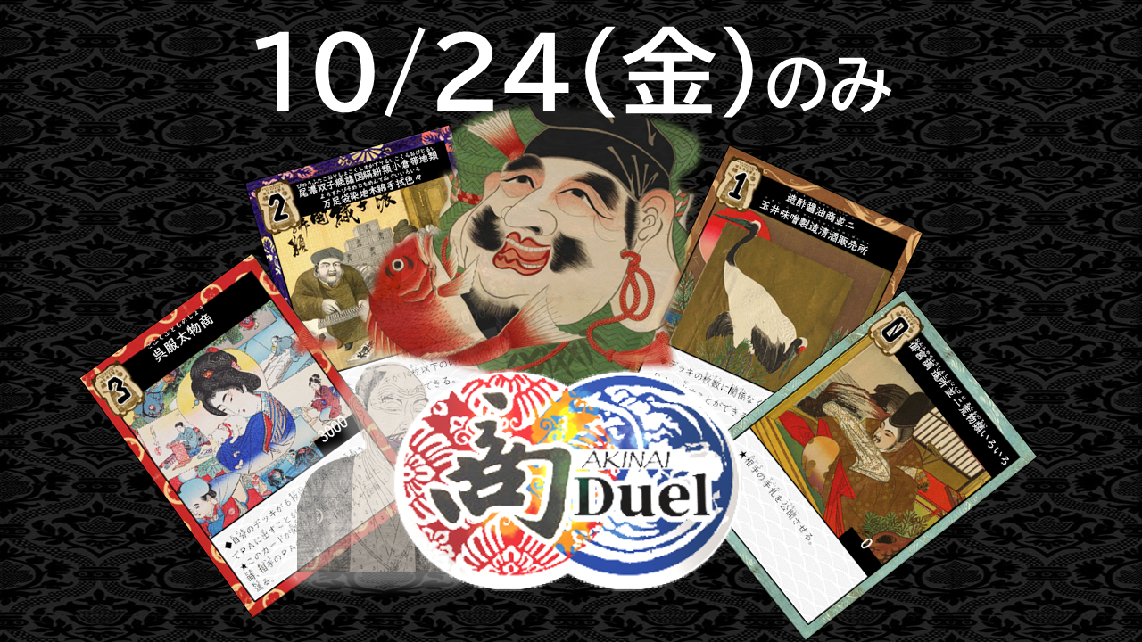 You can play Akinai Duel in our booth. We will explain how to duel on-site in Japanese, and we will get cards ready for you.We don't sell anything,sorry.