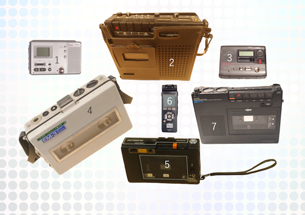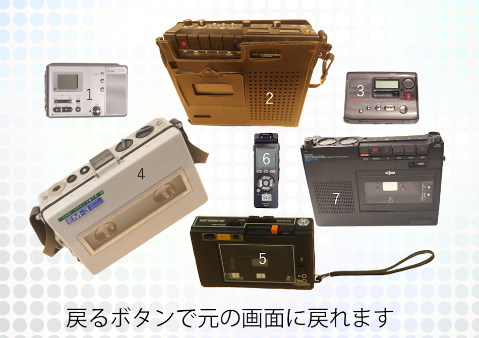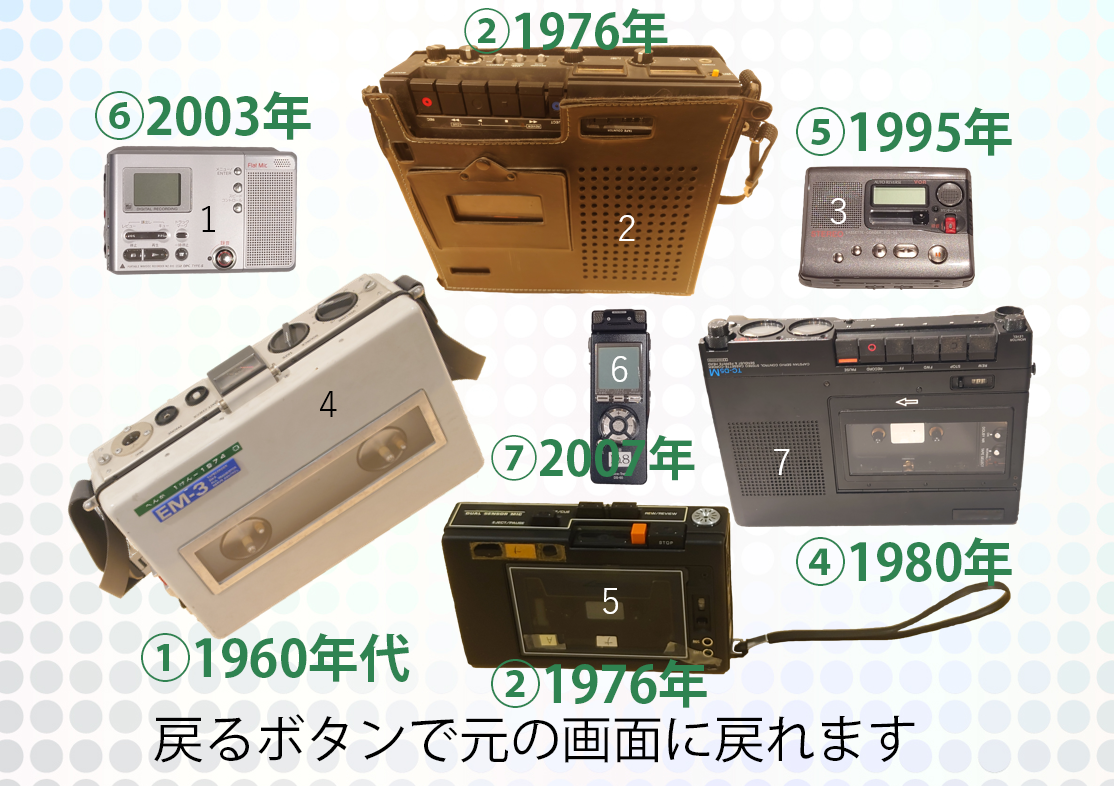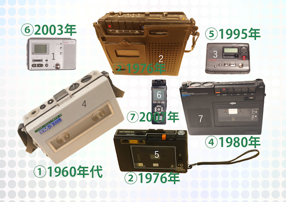 これらは研究で音声の記録に使用した機器です。古い順に並べてみませんか。